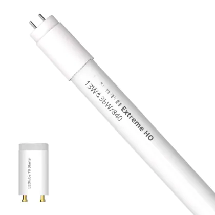 Bei der LED Röhre T8 Extreme (EM/Mains) High Output 13W 2100lm - 840 | 120cm - Ersatz Für 36W handelt es sich um eine energieeffiziente LED-Röhre. Sie ersetzt Ihre konventionelle Leuchtstoffröhre mit 36W. Die Röhre ist 1213 mm lang und hat die Farbtemperatur 4000K - Kaltweiss. Die durchschnittliche Lebensdauer der LED-Röhre beläuft sich auf 50000 Stunden. Wir bieten Ihnen für dieses Produkt eine Garantie von 5 Jahre an.