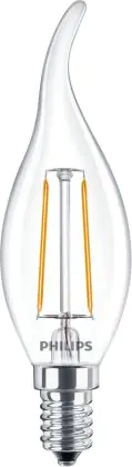 Philips Corepro LED Kerze E14 Gebogene Spitze Fadenlampe Klar 2W 250lm - 827 | Ersatz für 25W