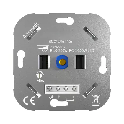 Le variateur LED RLC 0-300W 220-240V de Budgetlight est un variateur de haute qualité pour les ampoules LED. Il est particulièrement facile à installer et permet une grande flexibilité grâce au réglage individuel de l'intensité lumineuse minimale et du type de commande. Le variateur LED robuste de Budgetlight est en outre protégé contre les courts-circuits, les surcharges et les températures extrêmes.
