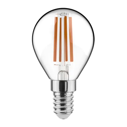 Cette ampoule LED E14 Boule Filament Claire 4.5W 470lm - 827 | Dimmable - Remplacement 40W avec son efficacité lumineuse de lumen par watt vous permettra de profiter d’un éclairage de qualité. Avec sa durée de vie de 15000 heures, vous n’aurez pas à vous soucier de son remplacement avant quelques années.