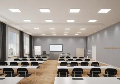 L'indice d'éblouissement unifié (UGR) indique dans quelle mesure la lumière d'un produit est aveuglante. Cette valeur change en fonction du domaine d'application et doit être conforme aux normes européennes (Norme EN 12464-1). Une faible valeur UGR signifie un faible facteur d'éblouissement. Pour les bureaux et les écoles, l'éclairage avec une valeur UGR<19 est obligatoire et pour les zones publiques un UGR<22. Dans notre blog, vous trouverez de plus amples informations sur l'UGR.
