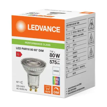 Description Ledvance LED PAR16 GU10 Réflecteur 7W 575lm 60D - 940 | Meilleur Rendu De Couleur - Dimmable - Remplacement 80W