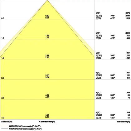 Le code couleur se compose de l'indice de rendu des couleurs (IRC) et de la température de couleur (Kelvin). Le premier chiffre indique le rendu des couleurs (1 = très mauvais rendu des couleurs, 9 = meilleure authenticité des couleurs). Le deuxième et troisième chiffre indiquent la température de la couleur. Exemple : Le code couleur "830" indique que la lampe a un bon rendu des couleurs (8) et une couleur de lumière blanche chaude (30 = 3000K). |