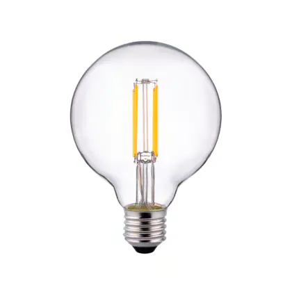 Cette ampoule Pro LED E27 Globe Filament Claire 95mm 6.5W 806lm - 827 | Remplacement 60W avec son efficacité lumineuse de lumen par watt vous permettra de profiter d’un éclairage de qualité. Avec sa durée de vie de 15000 heures, vous n’aurez pas à vous soucier de son remplacement avant quelques années.